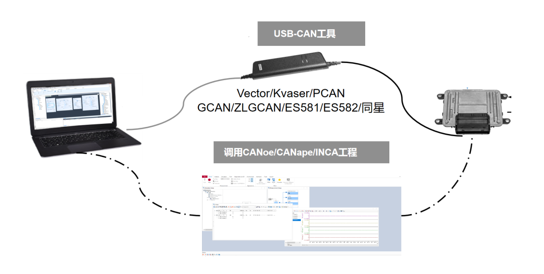 PolarTest不仅内置了通用的总线测试平台,还能够直接调用行业主流工具(如CANoe、CANape、INCA等),轻松实现标定与总线测试。用户只需通过一键切换硬件配置,即可复用测试场景,无缝兼容多软件工程。平台提供标准化接口,支持不同测试资源的灵活替换,无需重复开发脚本,即可快速迁移和复用测试用例,极大提升了测试效率与灵活性。