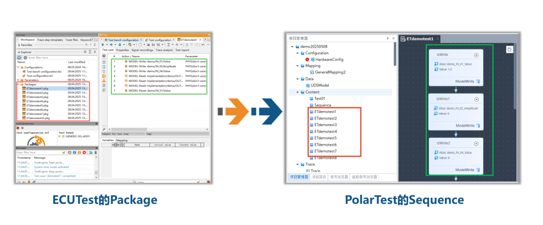 兼容ECUTest的测试用例,支持直接导入ECUTest测试的Package文件,ECUTest测试用例可直接在PolarTest中执行,并支持单条、批量导入。